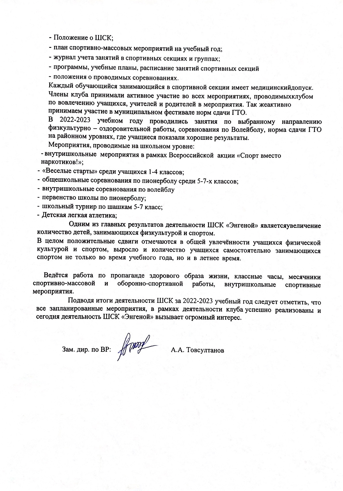 Аналитическая справка работы ШСК